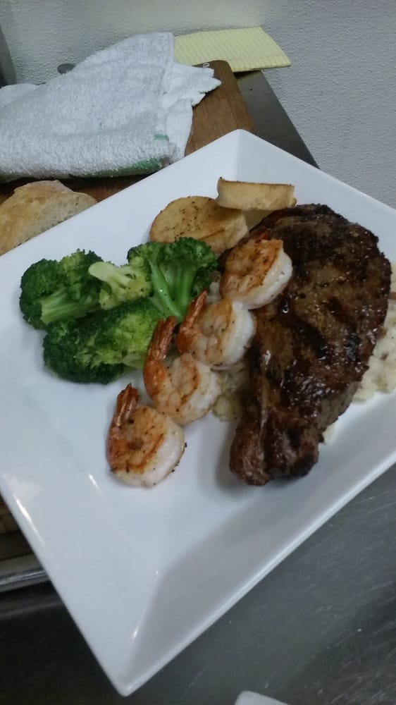 Lunch was very good here, and so we decided to try dinner as they had a Friday hamburger special advertised outside and my spouse was craving a good hamburger. Unfortunately, we would have been better off at a fast food place in both size and quality. I ordered another special -- shrimp with an assortment of sides. The shrimp.was good but the lack of side items that were listed on the dinner menu was disappointing. Our poor waiter kept having to come back and apologize and ask us to make new selections. He also was acting as bartender so he was basically on his own, but he was really trying to make us have a good dining experience.